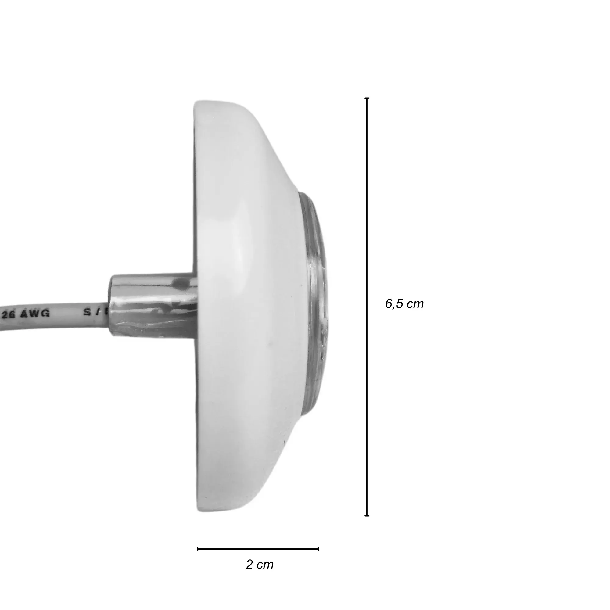 Corpo transparente em policarbonato para uma excelente propagação da luz.