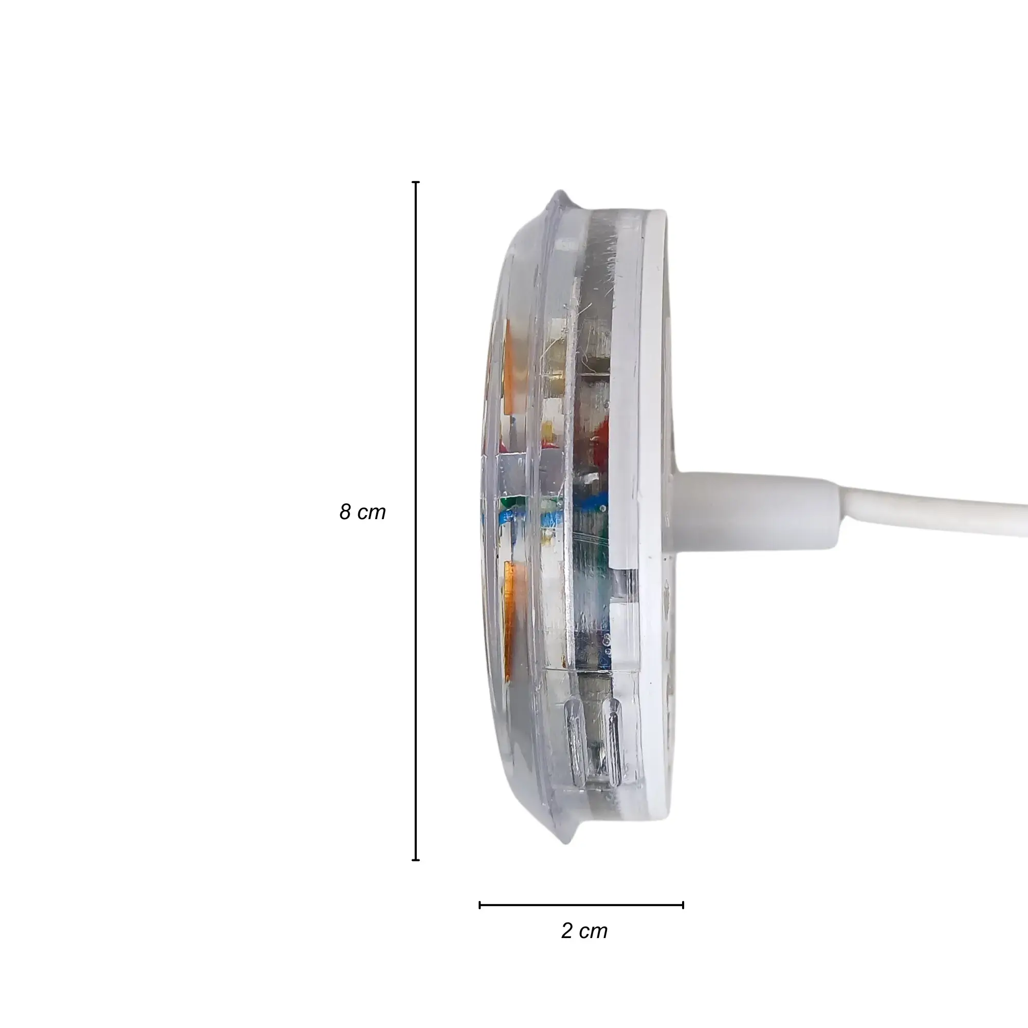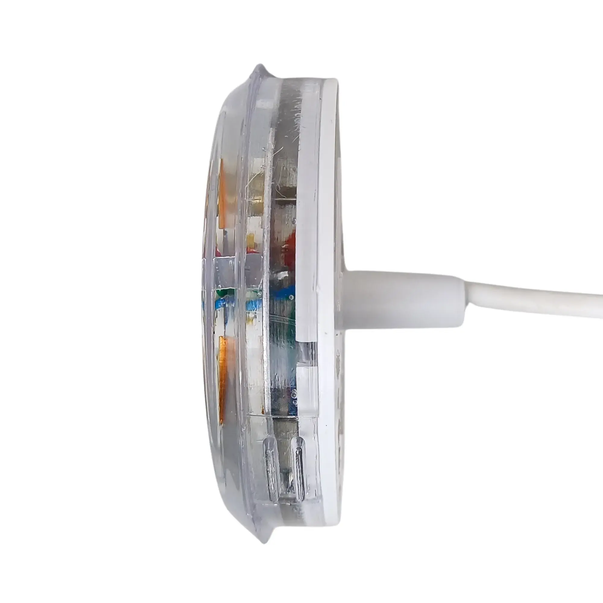 Corpo em policarbonato transparente para maior propagação da luz.