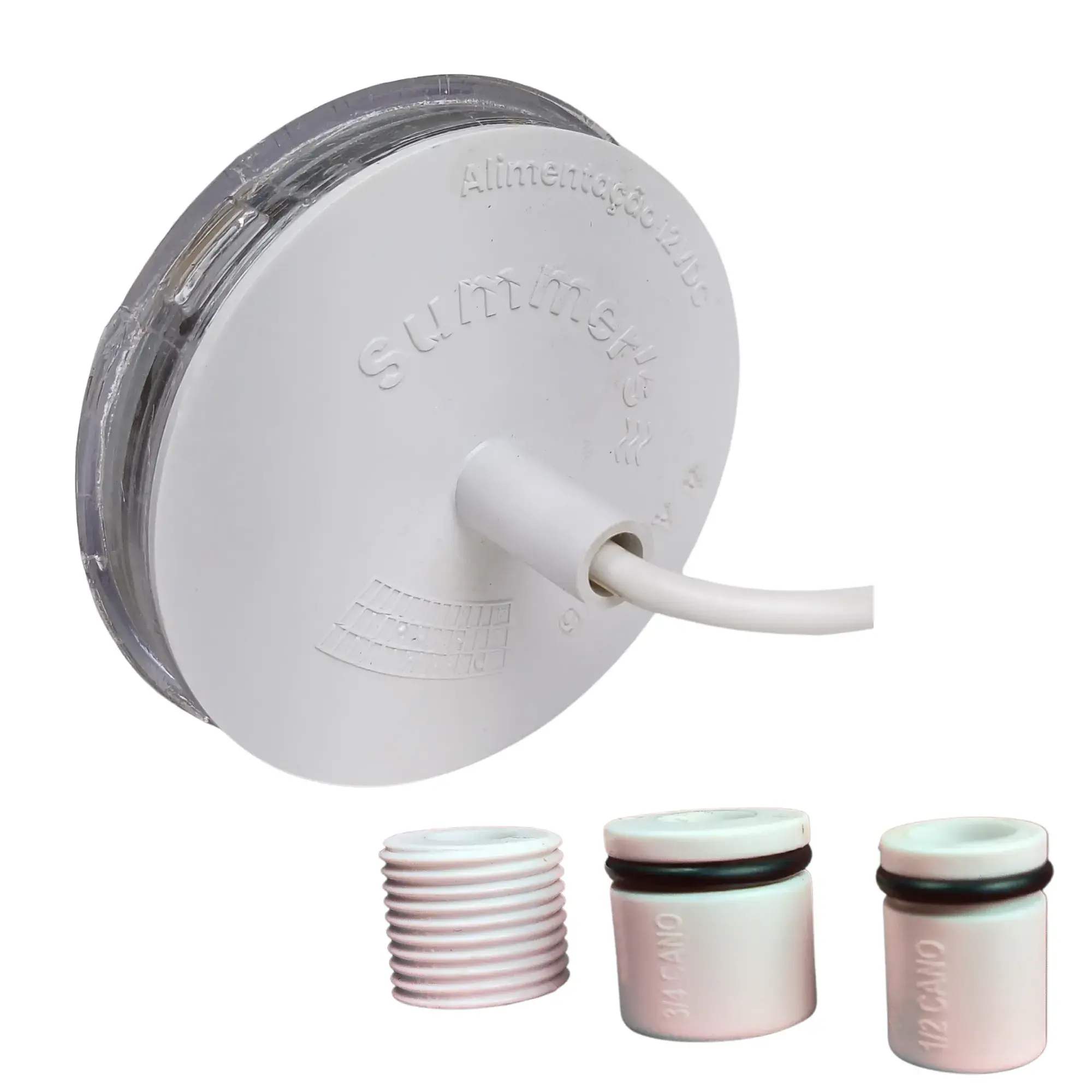 Três tipos de adaptadores para fácil instalação: encaixe de 1/2″ liso, 1/2″ rosca e 3/4″ liso.